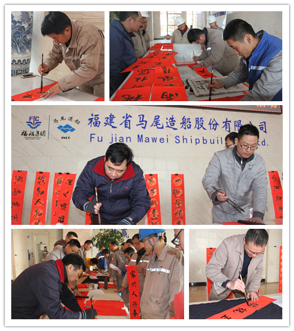 本报讯 2月7日,马尾造船公司工会组织开展“迎新春、送祝福、赠春联”活动,邀请公司书法爱好者为公司员工书写春联,寄予他们新年的美好祝福。