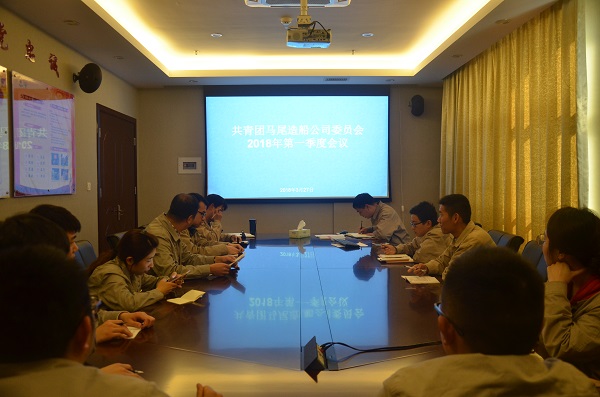 本报讯 3月27日,马尾造船公司组织公司团委委员及各团支部书记召开2018年第一季度团委会议,认真学习党的十九大精神,传达集团公司2018年团建工作重点。公司党委副书记、纪委书记张建军出席会议。