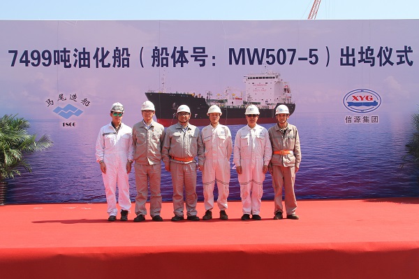 本报讯 3月28日,马尾造船公司为信源集团公司建造的第五艘7499吨油化船(MW507-5)出坞。