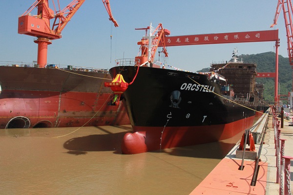 据了解,本次出坞的两艘7499吨沥青/油船于2015年12月24日开工,今年6月4日上船台,设计总长约109.9米,垂线间长104.0米,型宽20.00米,型深11.10米,服务航速约13.0节。该船主船体为单底双壳,具有独立货油舱,主要用于液态石油沥青及石油产品(闪点大于60℃)运输,装载液货最高温度200℃,入级BV船级社,设计方为上海佳豪。马尾造船一线工人听从指挥,严格按照项目计划施工,经过百日艰苦奋战,全力以赴攻克难点,将台风“莫兰蒂”对进度造成的影响降到最低,保证该两艘船均按计划节点出坞。