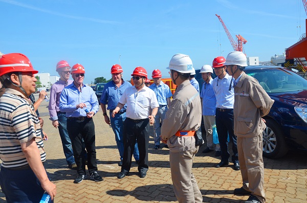 本报讯 5月14日下午,联合国国际海底管理局秘书长Michael Lodge,承包管理处处长Chapi Mwango,法律事务办公室法律官员蔡永胜一行莅临马尾造船公司,考察在建的227米深海采矿船和84米多用途移动平台。同行的有鹦鹉螺矿业公司首席执行官Michale Johnston,中国五矿集团科技管理部部长刘宁武、科技管理部总经理卓晓军,长沙矿冶院科技发展部副部长周韫,铜陵有色副总经理刘道昆、国际合作部及矿产资源管理部部长王建青等相关领导。福船集团副总经理、马尾造船董事长李振均,马尾造船常务副总经理李成清陪同。