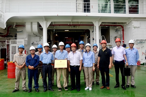 授牌仪式在105米饱和潜水支持船主甲板上举行。省直团工委书记陈国钦亲自授牌,MW632-1#项目经理余平代表项目组全体成员领取奖牌。陈国钦书记一行还出席座谈会,对马尾造船公司团建工作进行专项督导。马尾造船公司党委书记黄以豪、福船集团团委书记黄颖陪同参会。会上,陈国钦书记指出,马尾造船团委应充分结合“一学一做”,开展全团学习教育;要认真按照团的章程,加强团组织的基础建设;要继承优良传统,在工作中敢于求新求变。黄以豪书记要求公司团委要做好团组织活动的年度计划,扎实开展丰富青年的业余活动,为青年服务、为企业生产服务。