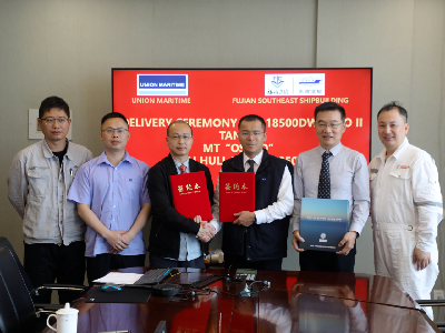 奋力冲刺“双过半”丨提前167天!东南造船18500DWT油化船(DN18500-3)顺利交付