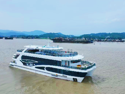 福宁重工49米双体纯电动推进旅游客船“屿见77”试航凯旋